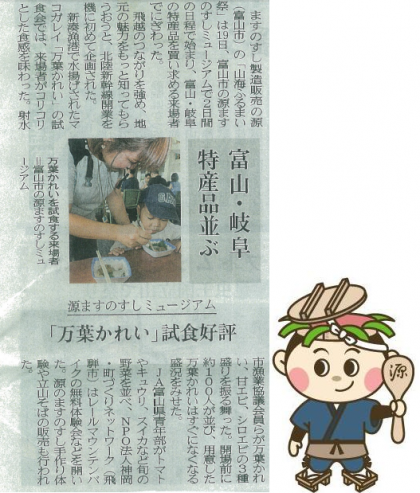 記事に使われとるがは万葉かれいを試食しとるお客様の写真やね!